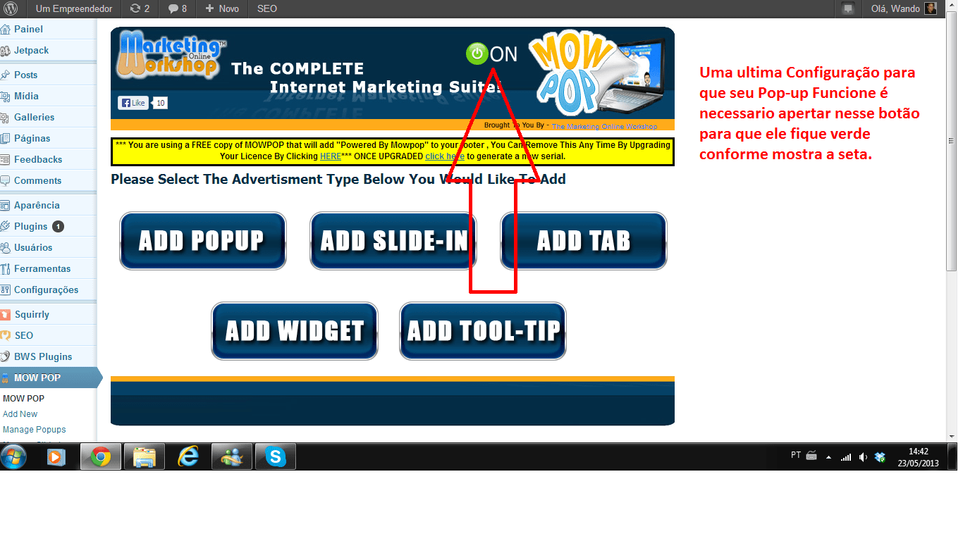 Eu não conhecia o Pop-up mow pop foi então que eu entrei em um grupo de blogueiros no Facebook chamado Ganhar Dinheiro com blog e perguntei se alguém conhecia um pop-up profissional tão bom quanto o Domination, e então o Jordão felix me indicou esse e me disse que nunca tinha usado e nem sabia quem estava usando e muito menos como configurar pois o site do plugin pop-up mow tinha um vídeo de como configurar porém era tudo em inglês.